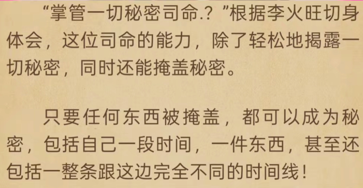 白玉京无限大,三清可以将一整条时间线化为一个秘密,而且可以布满整个白玉京,而且每条秘密都为他所用,一个秘密一单体,然后无限秘密可以到多元