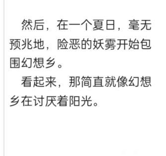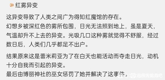 红雾毫无预兆的笼罩了整个幻想乡,因为心血来潮讨厌太阳于是蕾米从指尖释放并造就了红雾异变,并持续了半个月