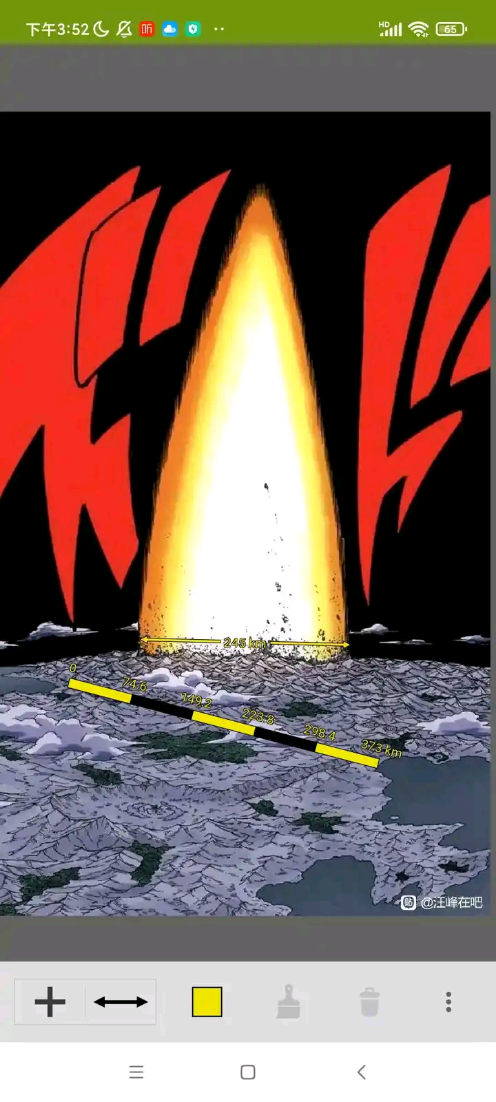 一阶十尾水滴尾兽玉大小,按照舍人剧场版雷之国左侧大陆架能够算出就算不考虑近大远小也在240km以上