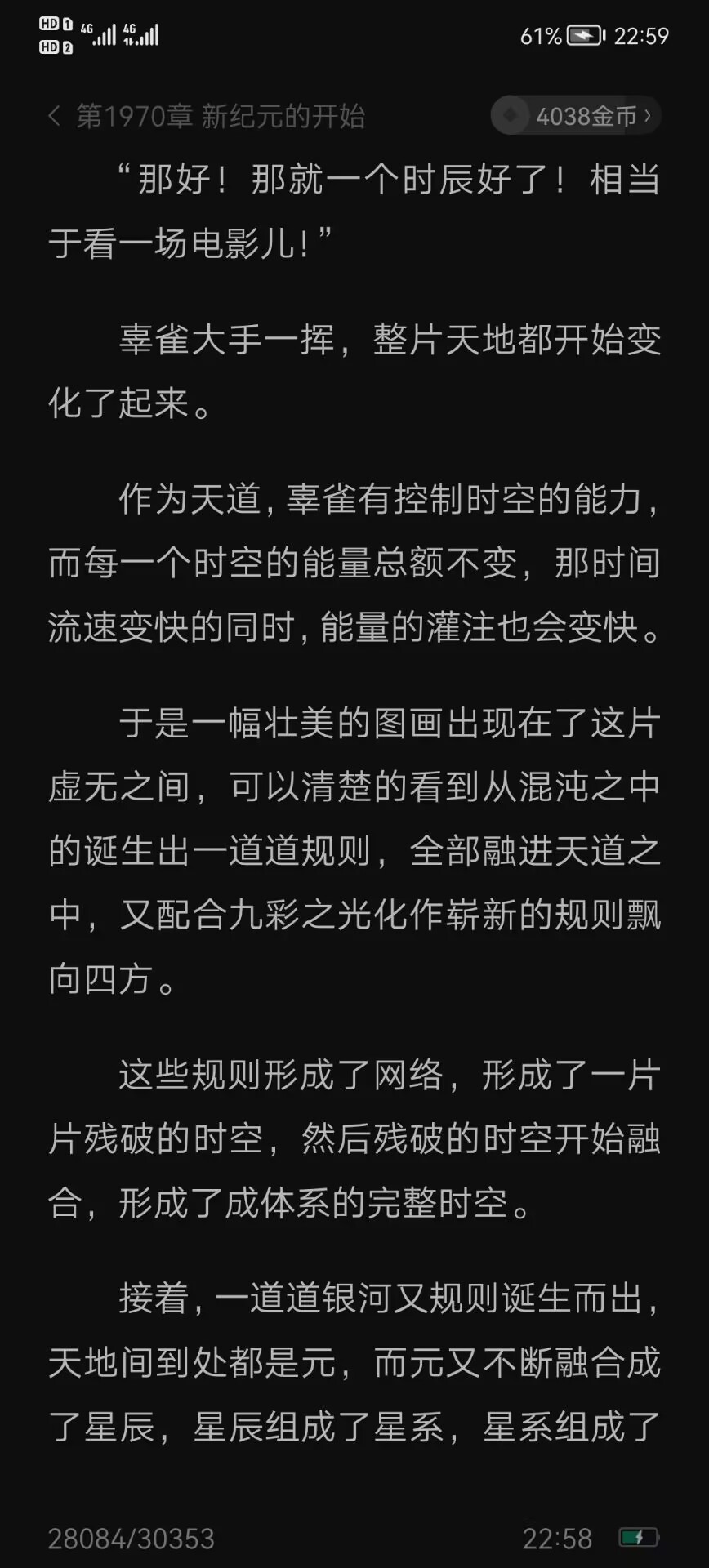 于是一幅壮美的图画出现在了这片虚无之间,可以清楚的看到从混沌之中的诞生出一道道规则,全部融进天道之中,又配合九彩之光化作崭新的规则飘向四方。