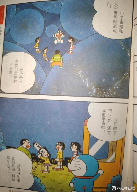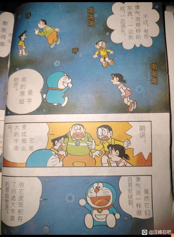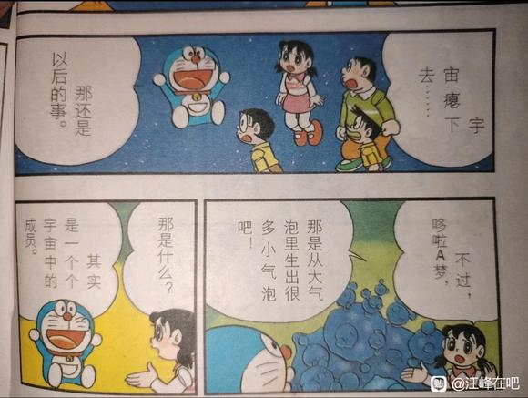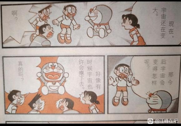 结合哆啦的话以及这篇漫画之后的讲解,我们得知哆啦A梦中的多重宇宙中,至少同时存在的永恒膨胀、稳态存在以及膨胀后再收缩的三种不同类型的宇宙