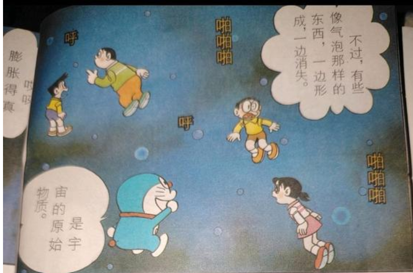 虚无世界随时随地涌现出无数创生宇宙的“原始物质”,宇宙大爆炸时,膨胀的“泡”本身又分裂出无数的“泡”,根据漫画可以知道,这是宇宙创生的过程中本身也会创生无数宇宙之外的宇宙,这是哆啦A梦世界观多重宇宙的基本构成