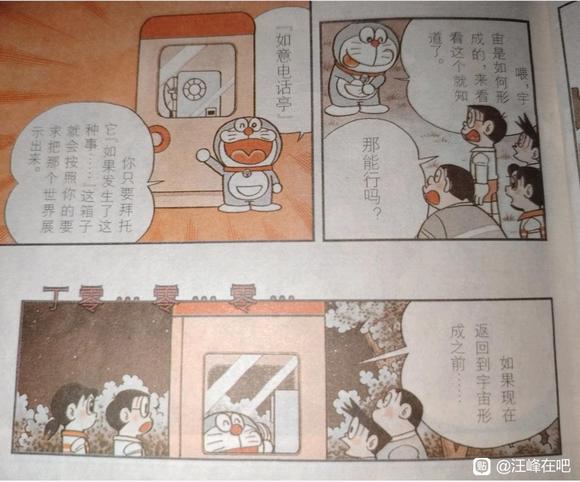 在«宇宙大冒险»的开场漫画«宇宙的起源»中,哆啦A梦因为大雄对宇宙的思考而使用了如果电话亭。