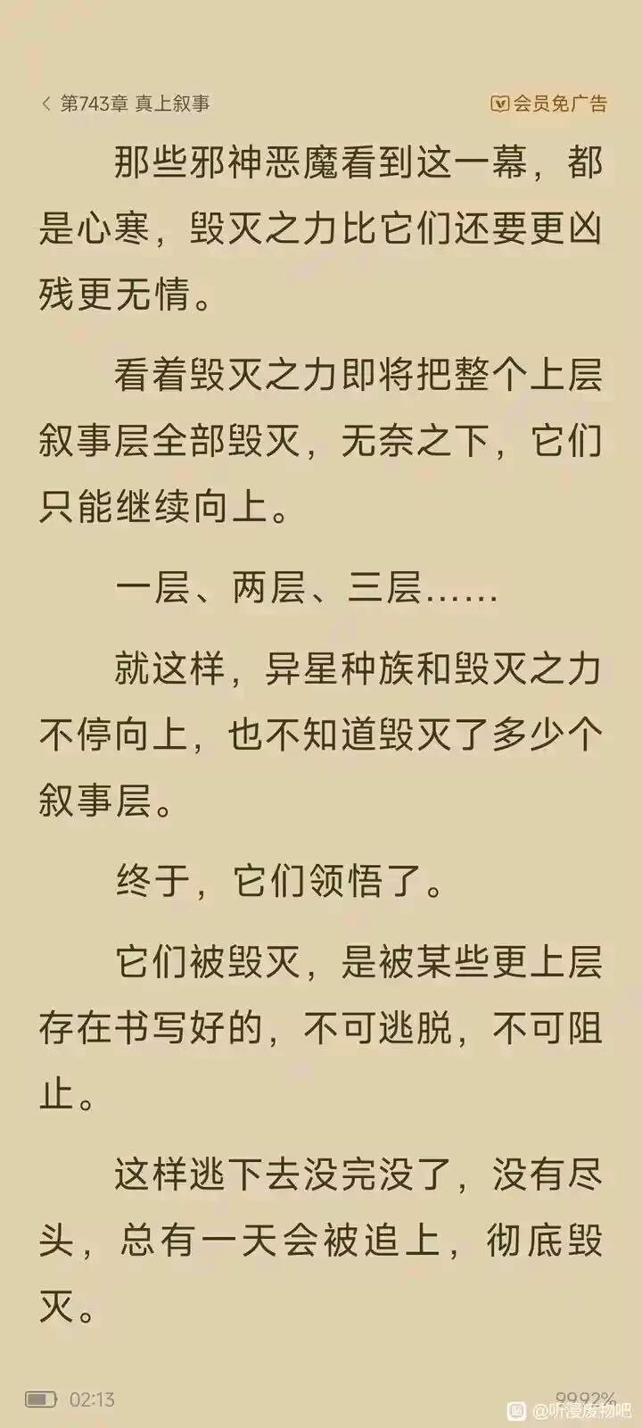 就这样,异星种族和毁灭之力不停向上,也不知道毁灭了多少个叙事层。