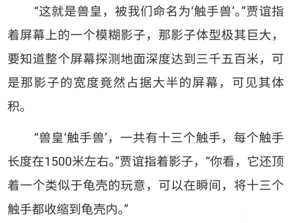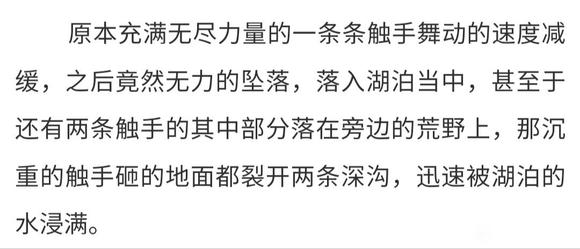 挥舞触手摧毁周围数公里一切,能够在地底3500m的岩石层中快速挥舞触手战斗,造成数百里荒野地震动