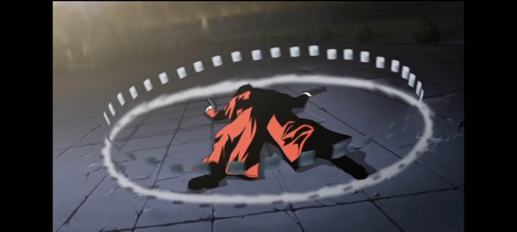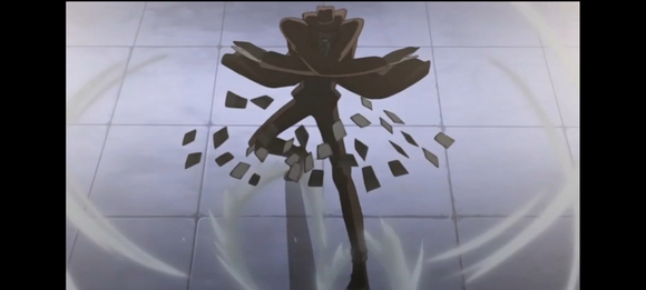 能力是飞牌,投掷卡牌造成的罡风足以破坏地面(卡牌的攻击范围要比看起来的体积更大)