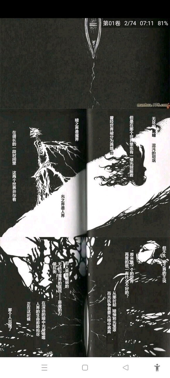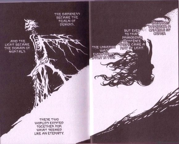 最初的原始混沌,被分割为光明与黑暗,也就是所谓的人界和魔界。