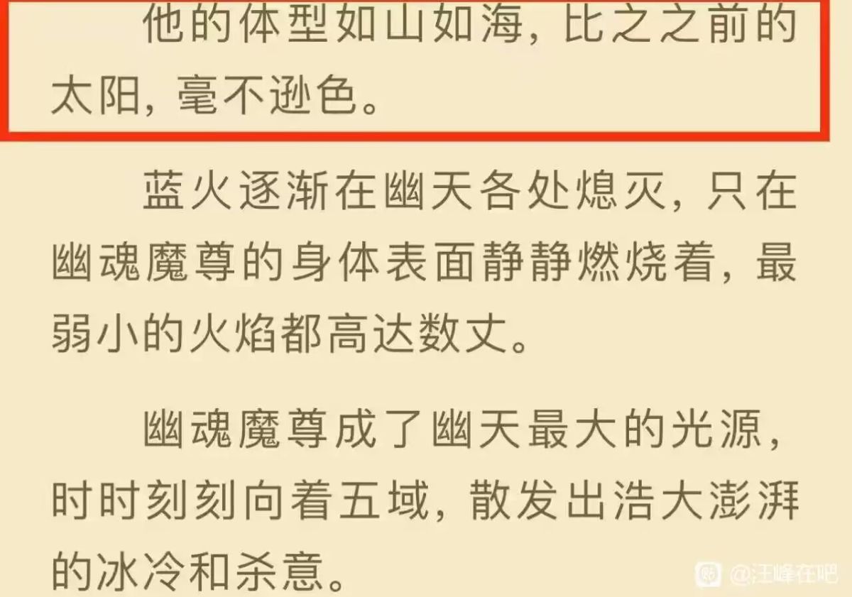 然后来看幽魂魔尊的体型:幽魂魔尊在疯魔窟时期,一只眼睛就大于方圆数千里。后面体型膨胀百倍,且后续又继续暴涨了体型