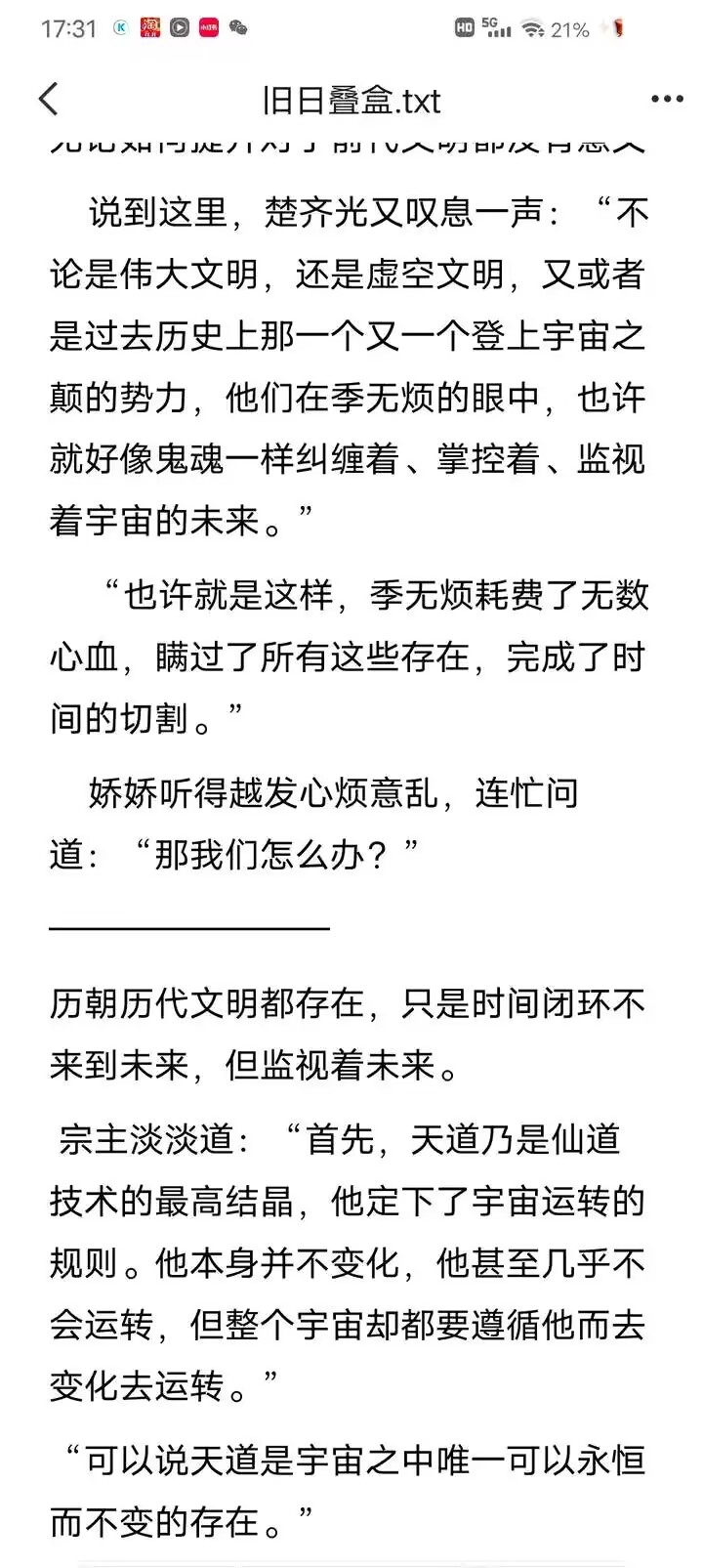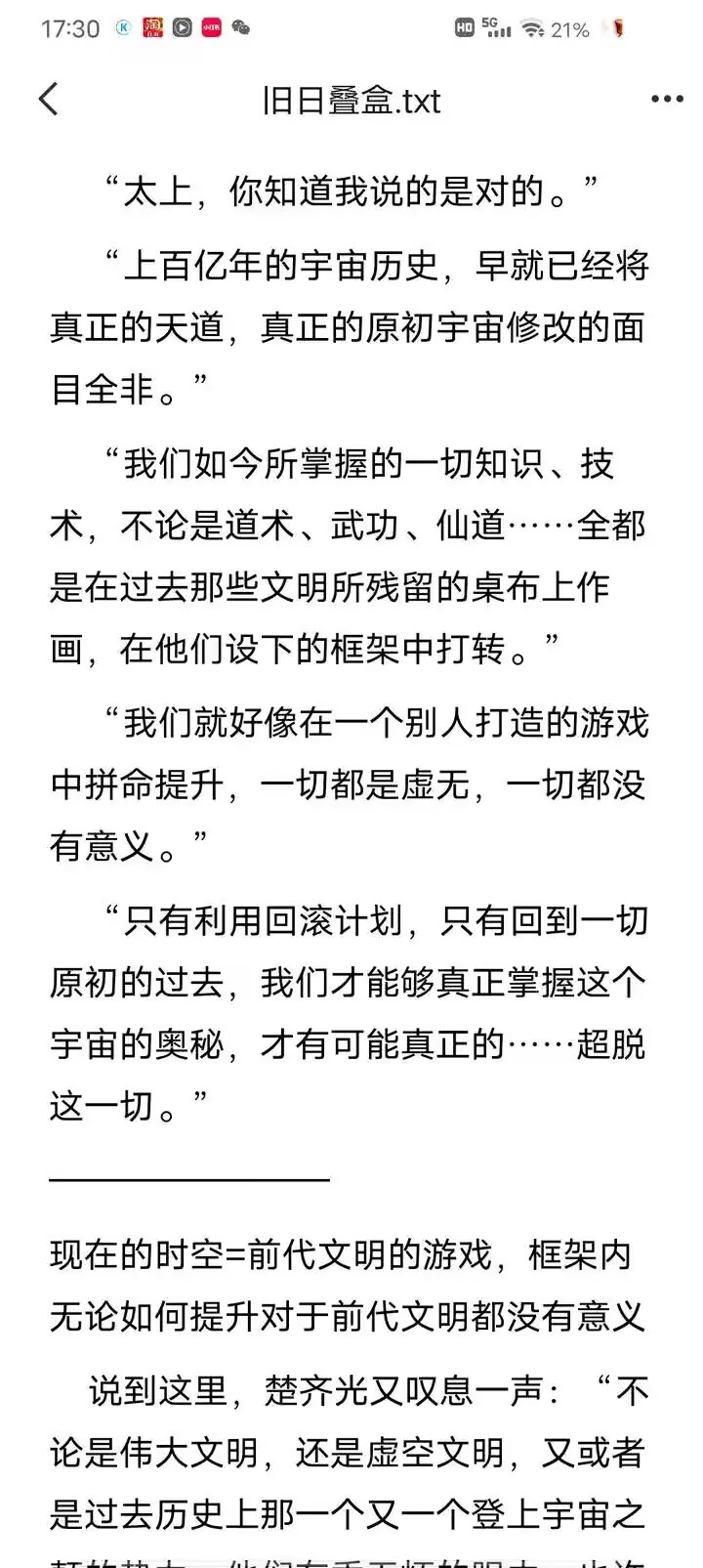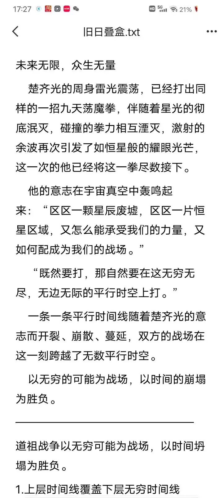 其次这个根本不要紧,只是论证下层时空也有无穷平行时空,另外一个就是平行文明的无尽平行时空,而且这些都会被强者收束,后面也提到了问题为什么开天之巅只能叠几层的原因就是这个,关键在于虚空文明有时间资源上去。