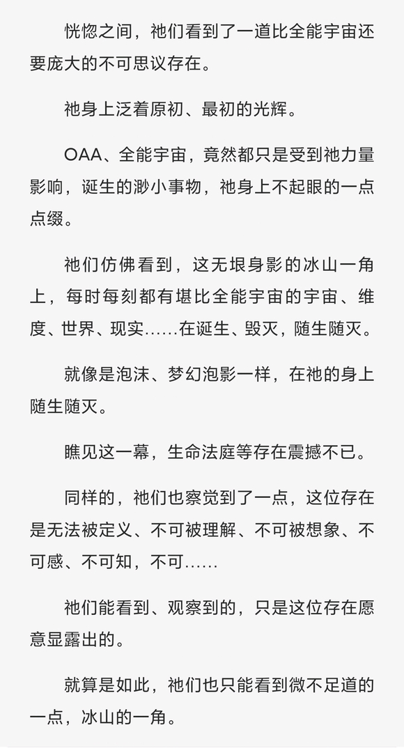 随着无限多的奇点出现,无限的界、空间、维度、宇宙、次元……也随之诞生,在祂周身随生随灭的诞生。