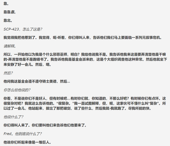 然后Fred就闯祸了,显然SCP-4028听不进Fred解释。